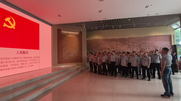 “我志愿加入中國共產(chǎn)黨……”在東江縱隊紀念館莊嚴的黨旗前,全體黨員整齊列隊,在黨支部書記游才文同志的帶領下,重溫入黨誓詞。字字千鈞的承諾既是對革命先輩精神的傳承,更是對新時代使命擔當?shù)那f嚴宣告。